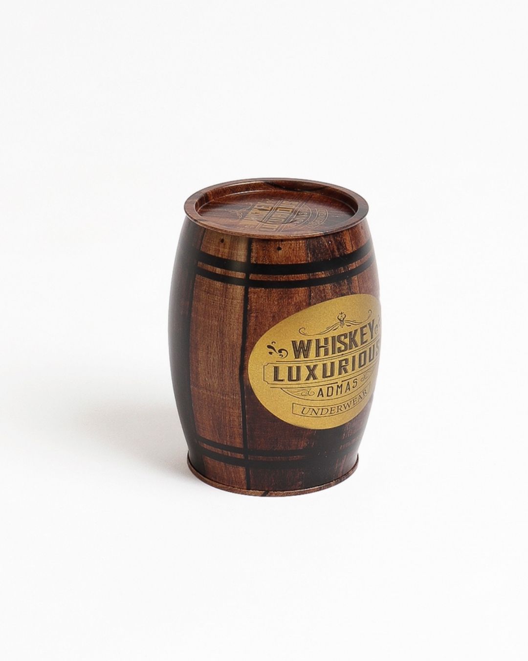 Confezione: Il capo è venduto in un'originale scatola di metallo a forma di botte di whisky, con etichette in stile vintage. La scatola è riutilizzabile.