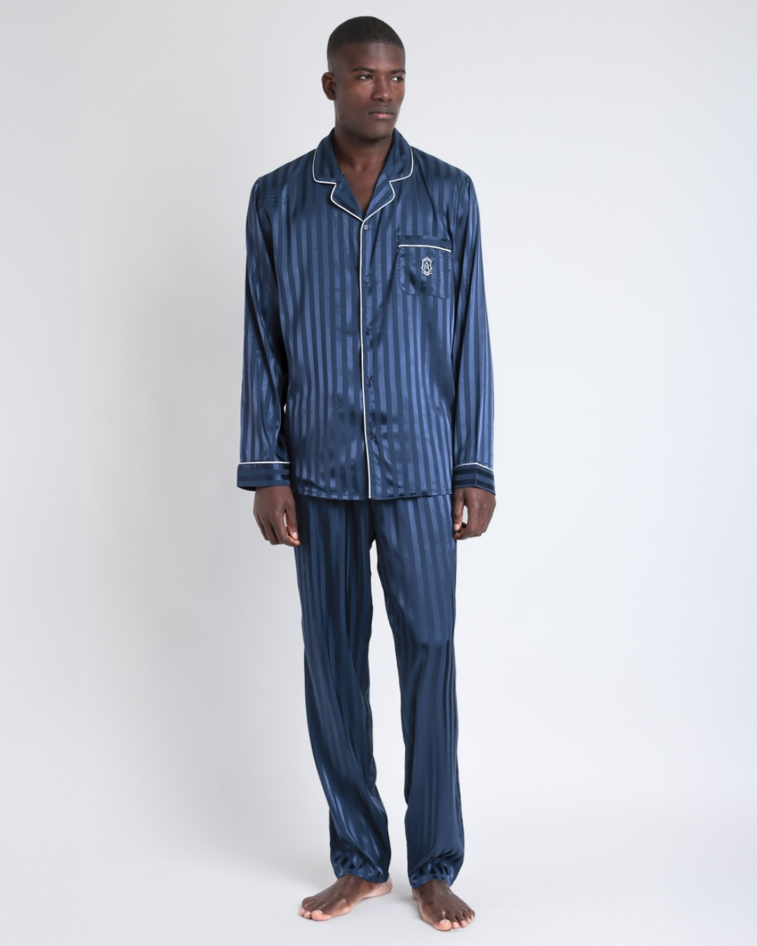 * Pigiama aperto in tessuto satinato, con maniche lunghe e pantaloni lunghi.