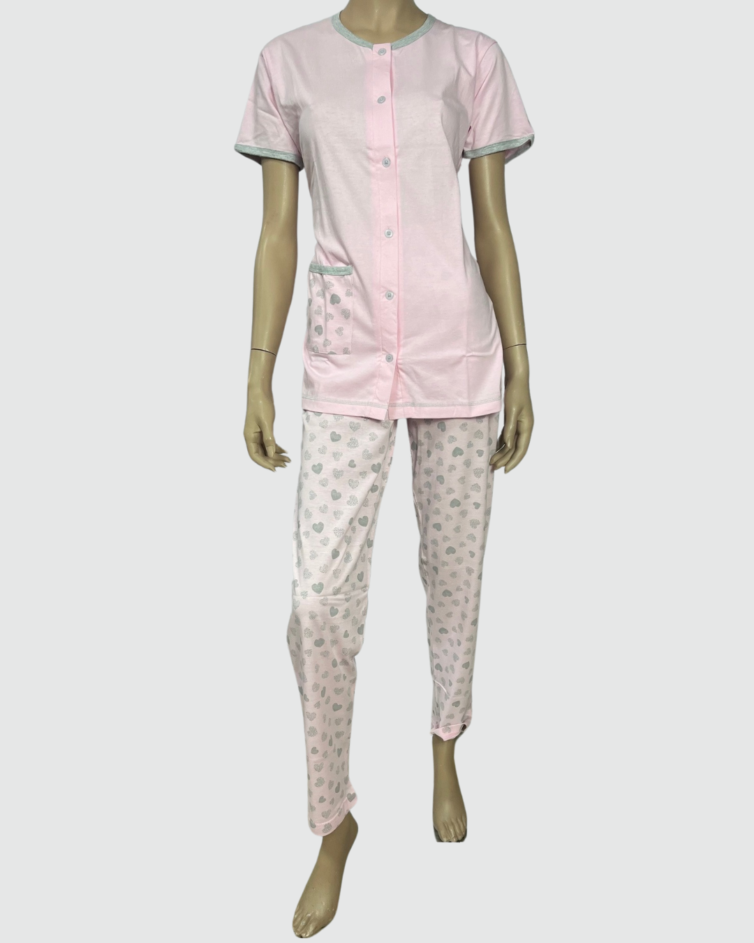 Baci Di Notte Pigiama Donna Cotone Manica Corta Aperto Avanti Pantalone Lungo
