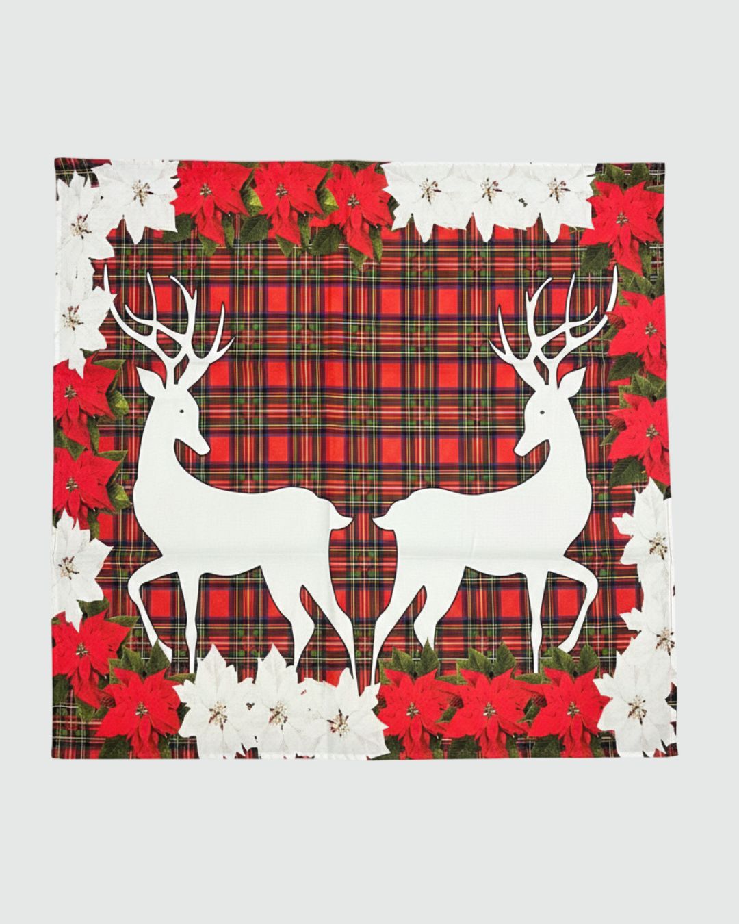 Caratterizzato dall'intramontabile trama scozzese (tartan) nei toni del rosso e del verde, il design è impreziosito da due eleganti renne bianche in silhouette che si guardano, simbolo di armonia e pace.