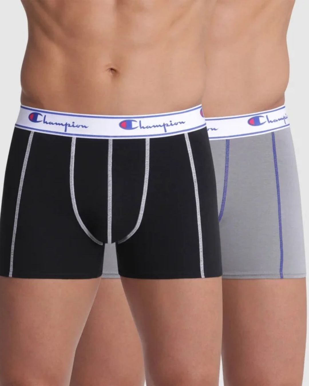 Confezione di 2 boxer da uomo Champion  in cotone elasticizzato con elastico esterno e logo stampato.