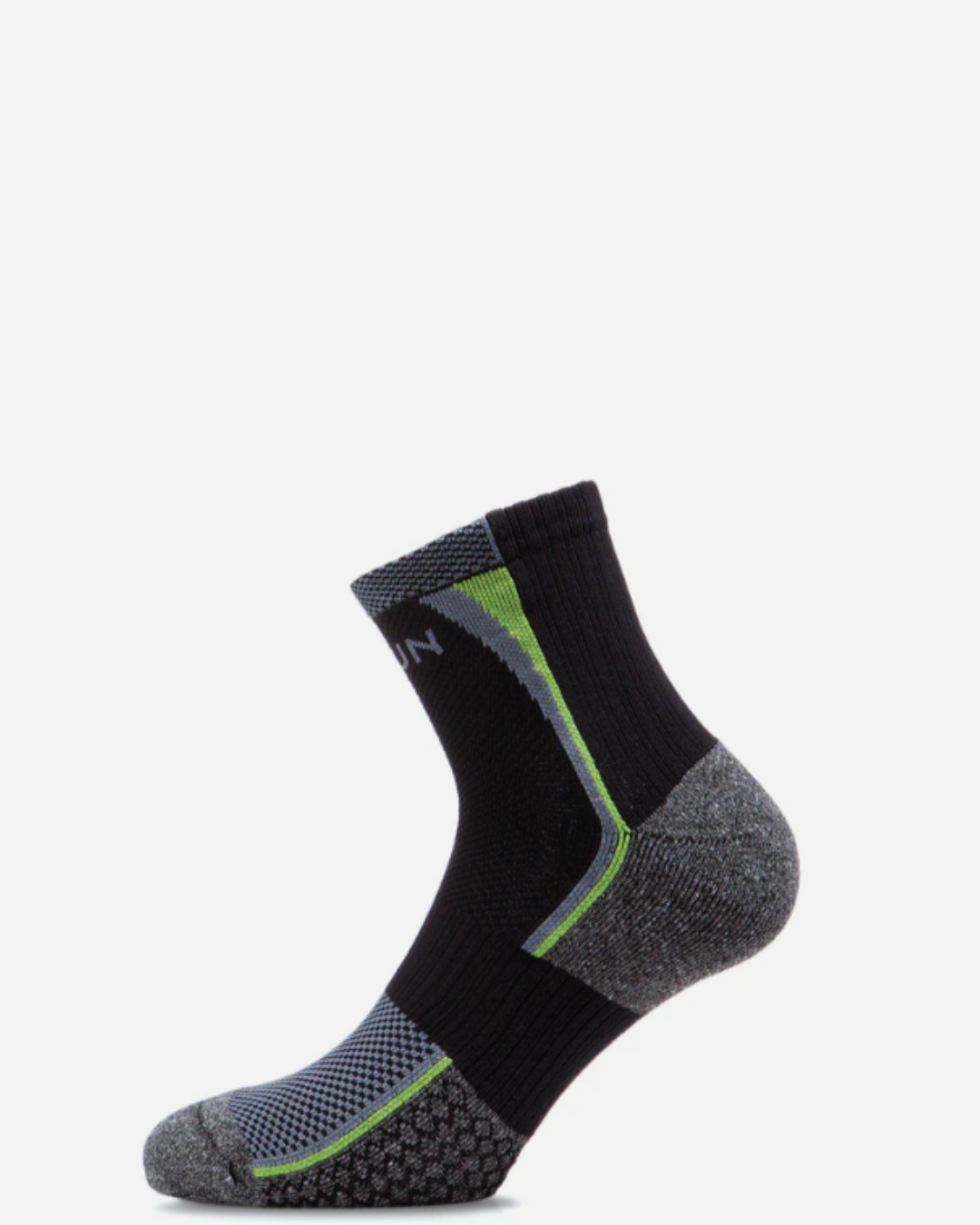 - Protezione e Ammortizzazione: Zone rinforzate su tallone e punta (grigio melange) per ridurre l'impatto e prevenire le vesciche.
