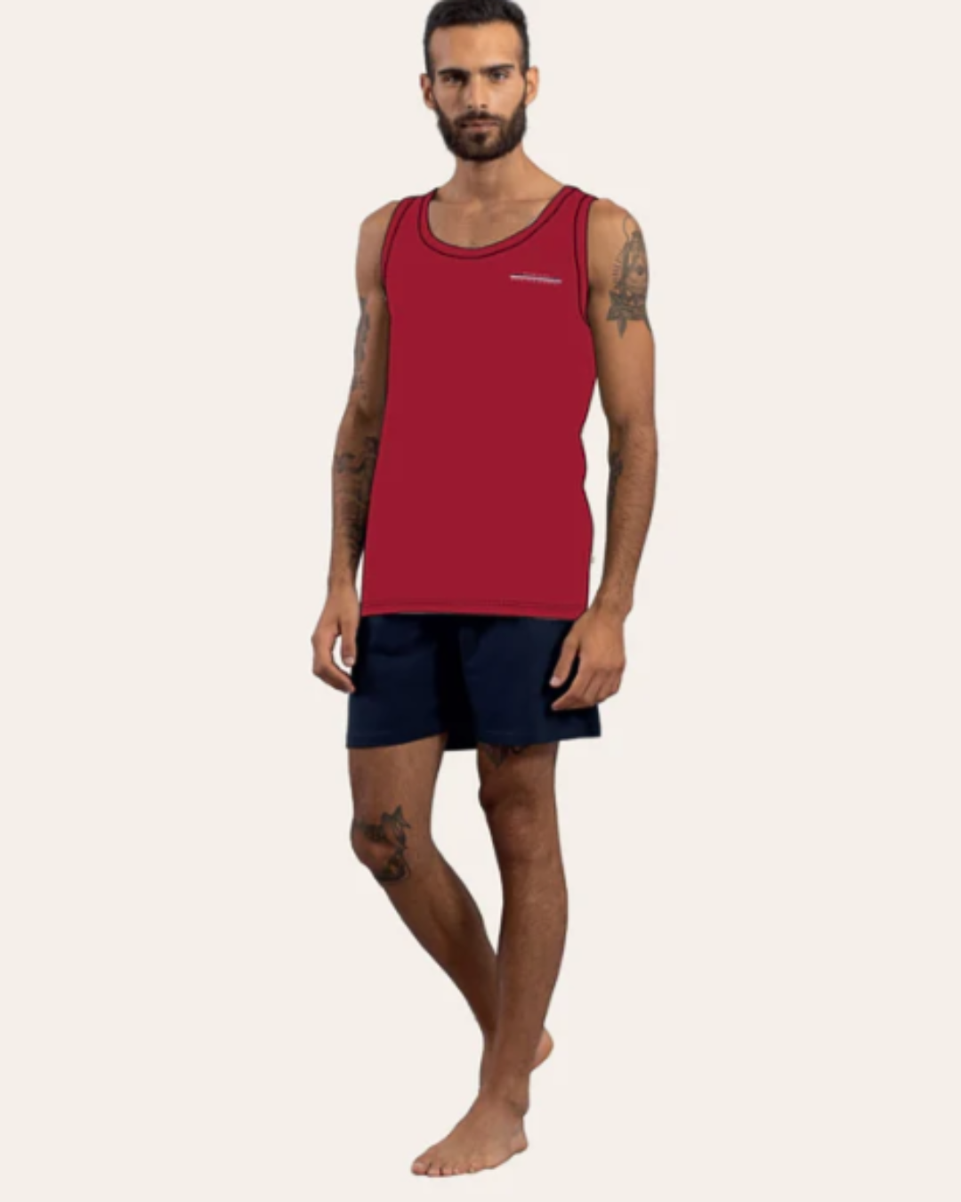 Canotta spalla larga e pantalone corto con elastico in vita.