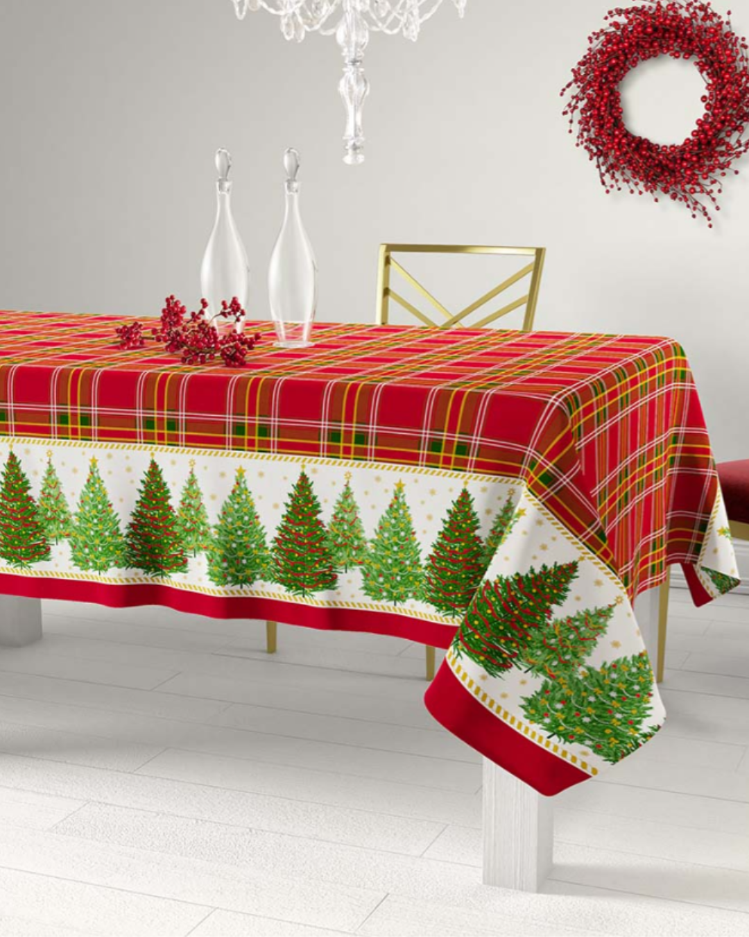 Tovaglia in rasatello di cotone natalizia IRGE 24 posti disponibile in magiche fantasie. Misure 140X480. Made in Italy.