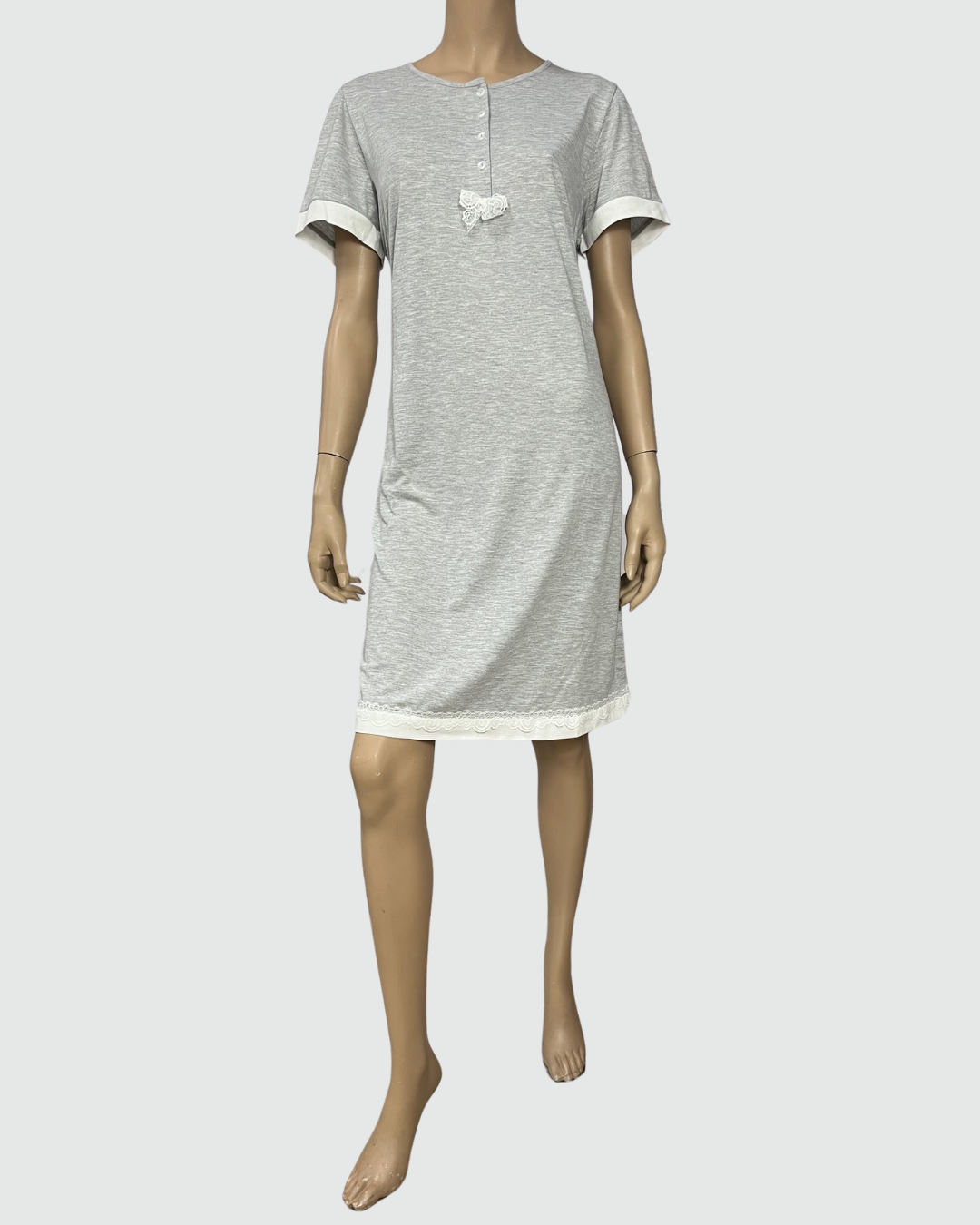 Manica corta, scollo a giro e apertura frontale con bottoni.