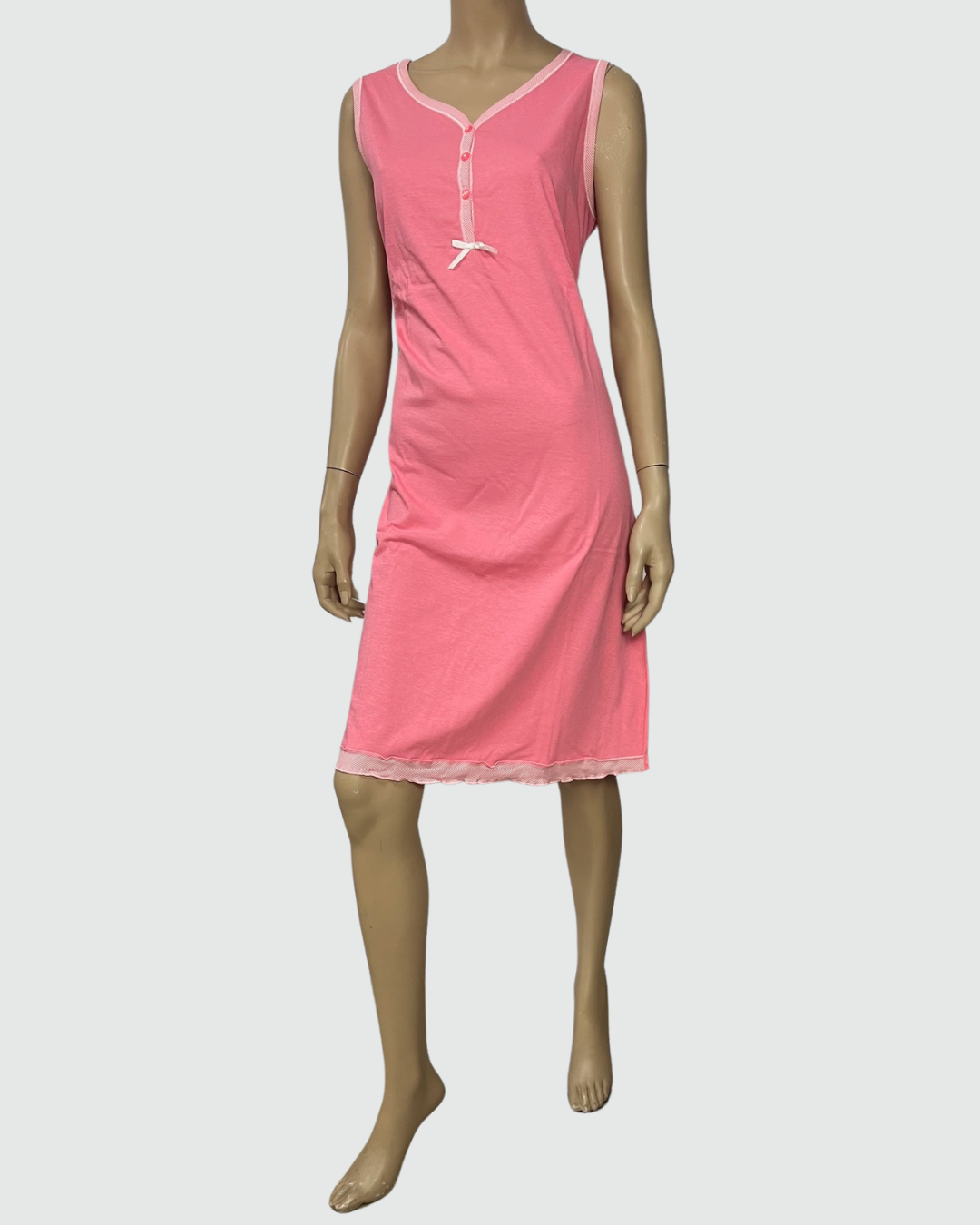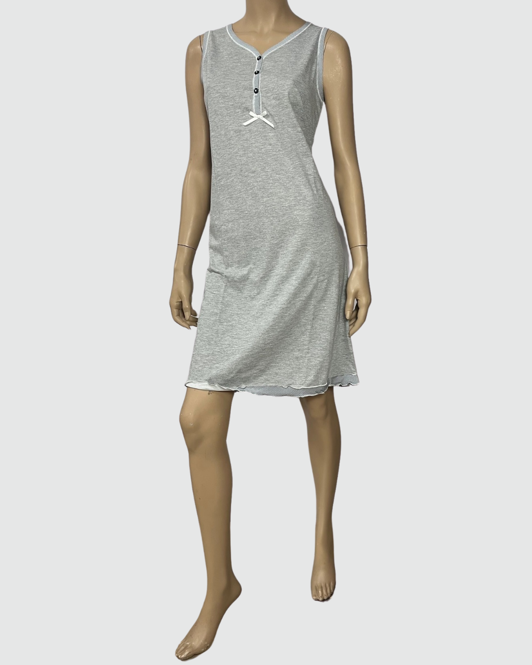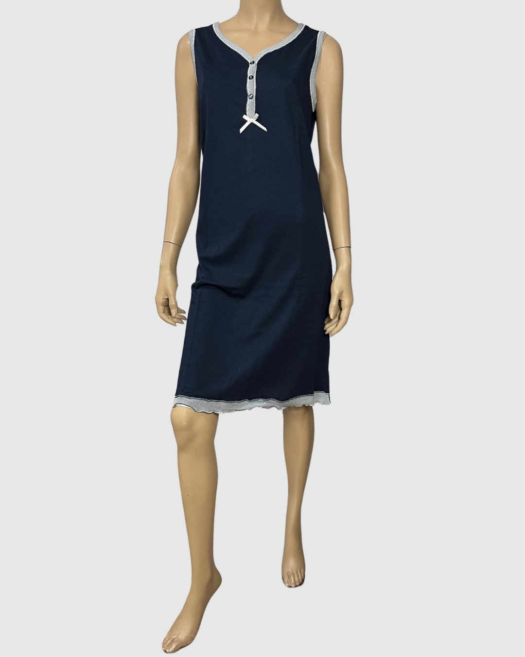 Camicia da notte estiva da donna a spalla larga, scollo a V e bottoni.