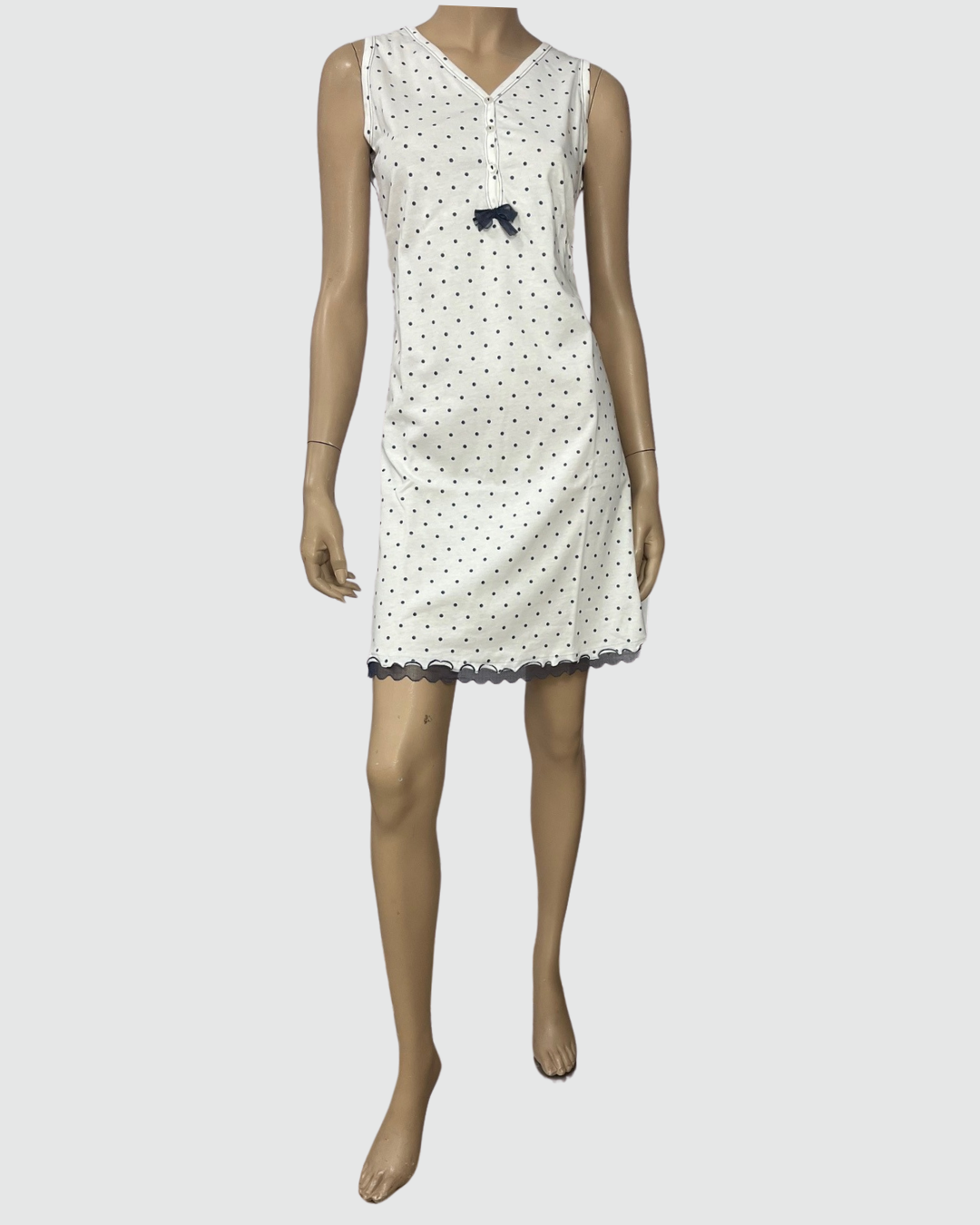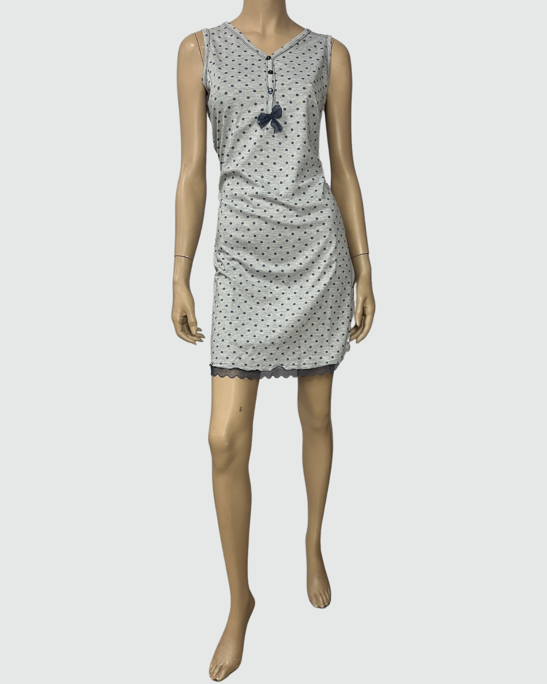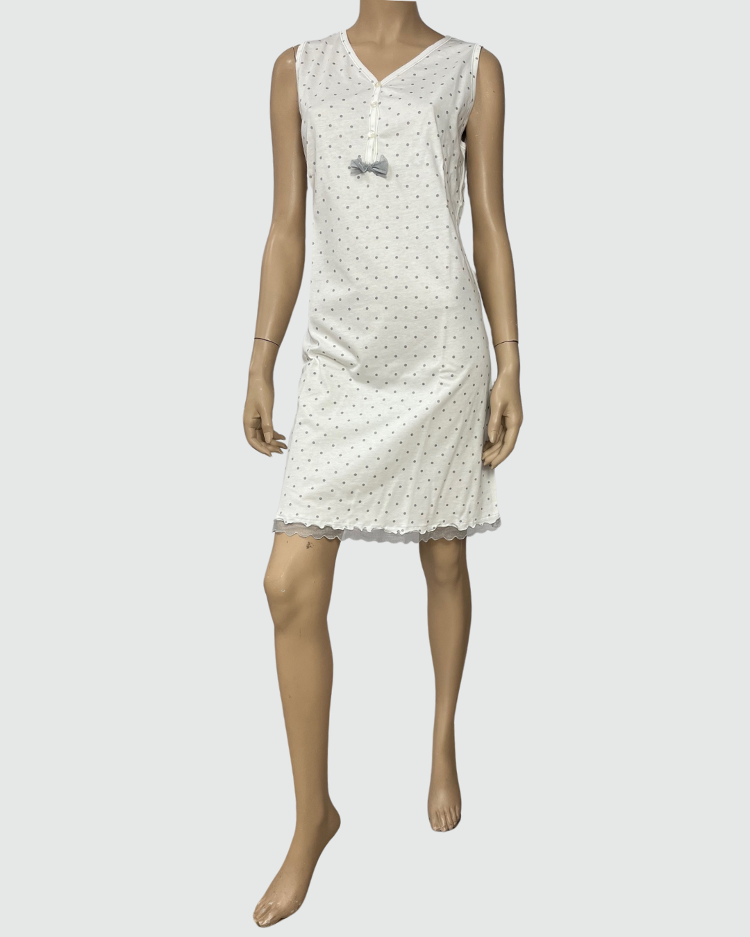 Camicia da notte estiva da donna a spalla larga, scollo a V e bottoni.