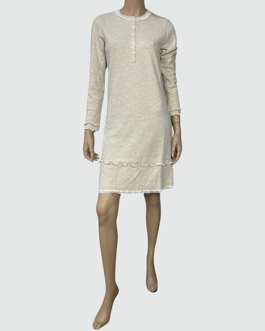 Camicia da notte punto Milano con maniche lunghe, scollo a giro e bottoni.