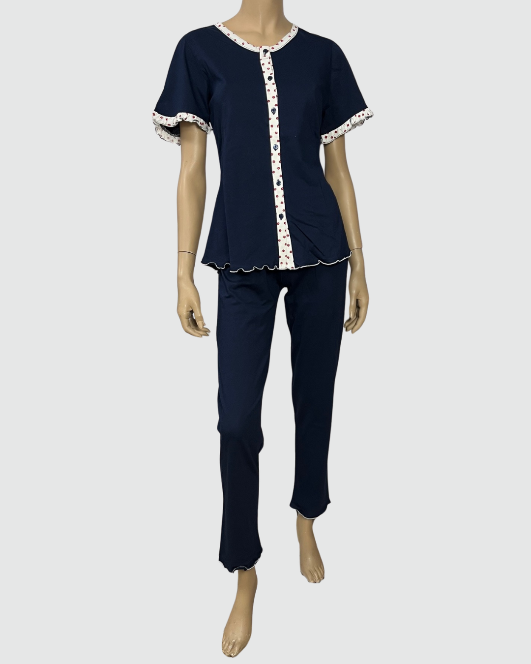 Julie Pigiama Donna Cotone Manica Corta Aperto Avanti