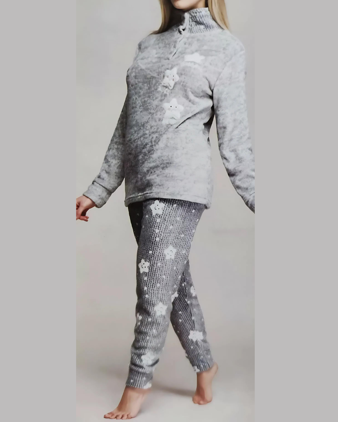 Pantalone lungo con elastico in vita e polsini, simpatica fantasia stelle.