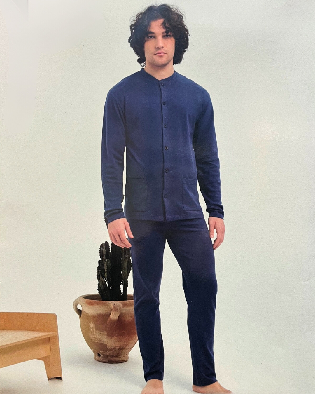 Kissimo Biancaluna Pigiama Uomo Caldo Cotone Aperto Avanti