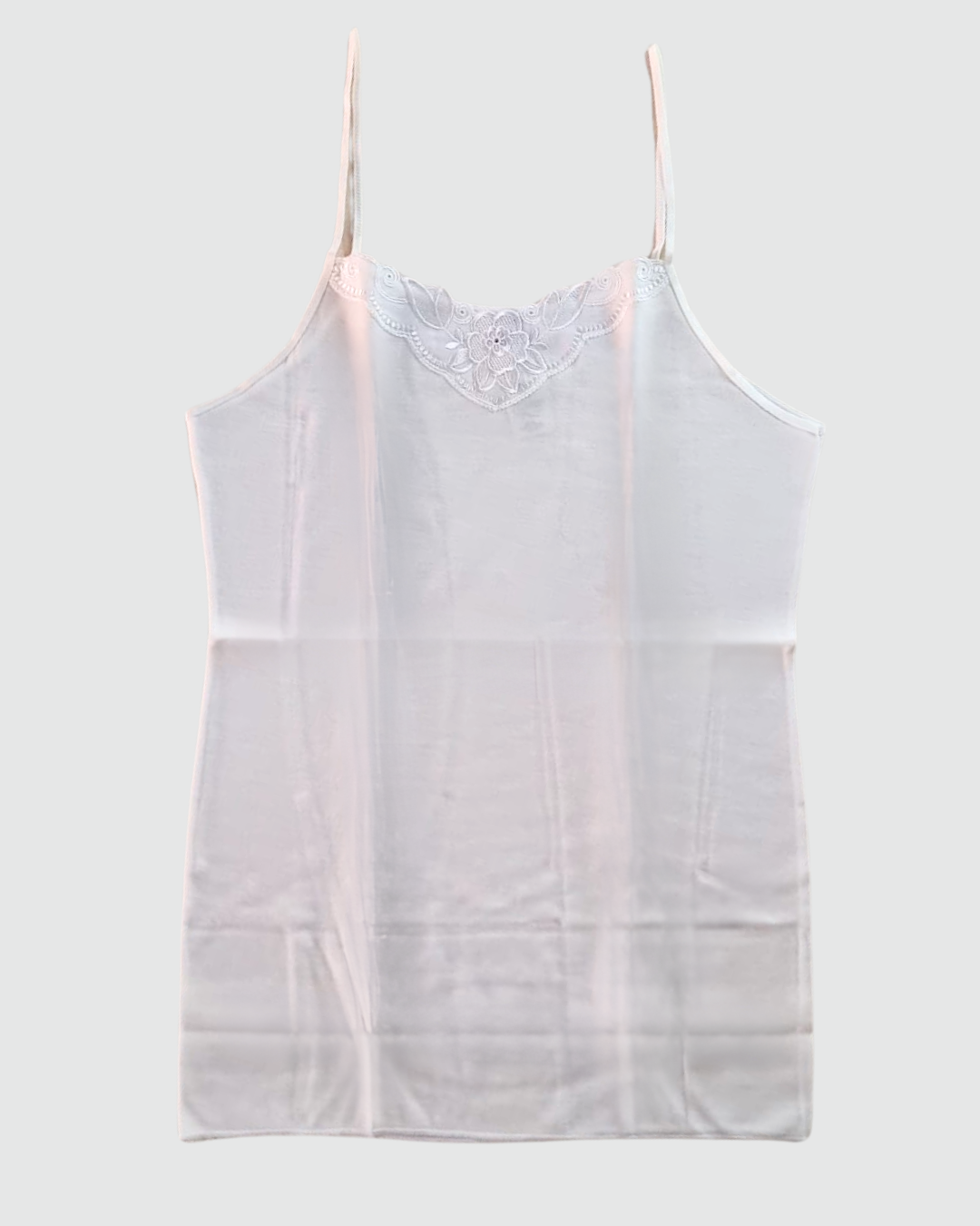 Canotta intima donna Liabel in lana e cotone con spalla stretta e scollo rotondo con pizzo.