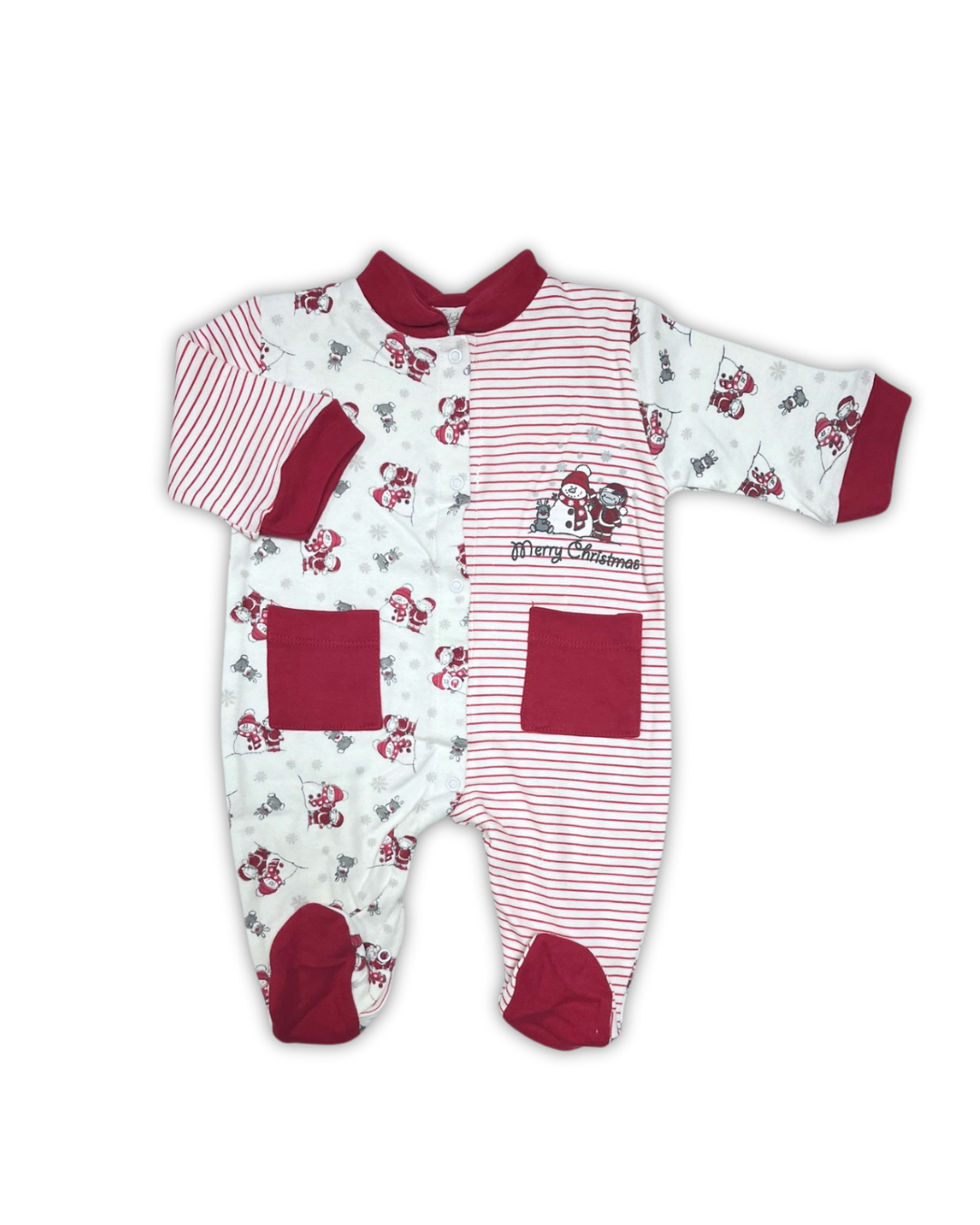 Tutina neonato in caldo cotone con fantasia natalizia.