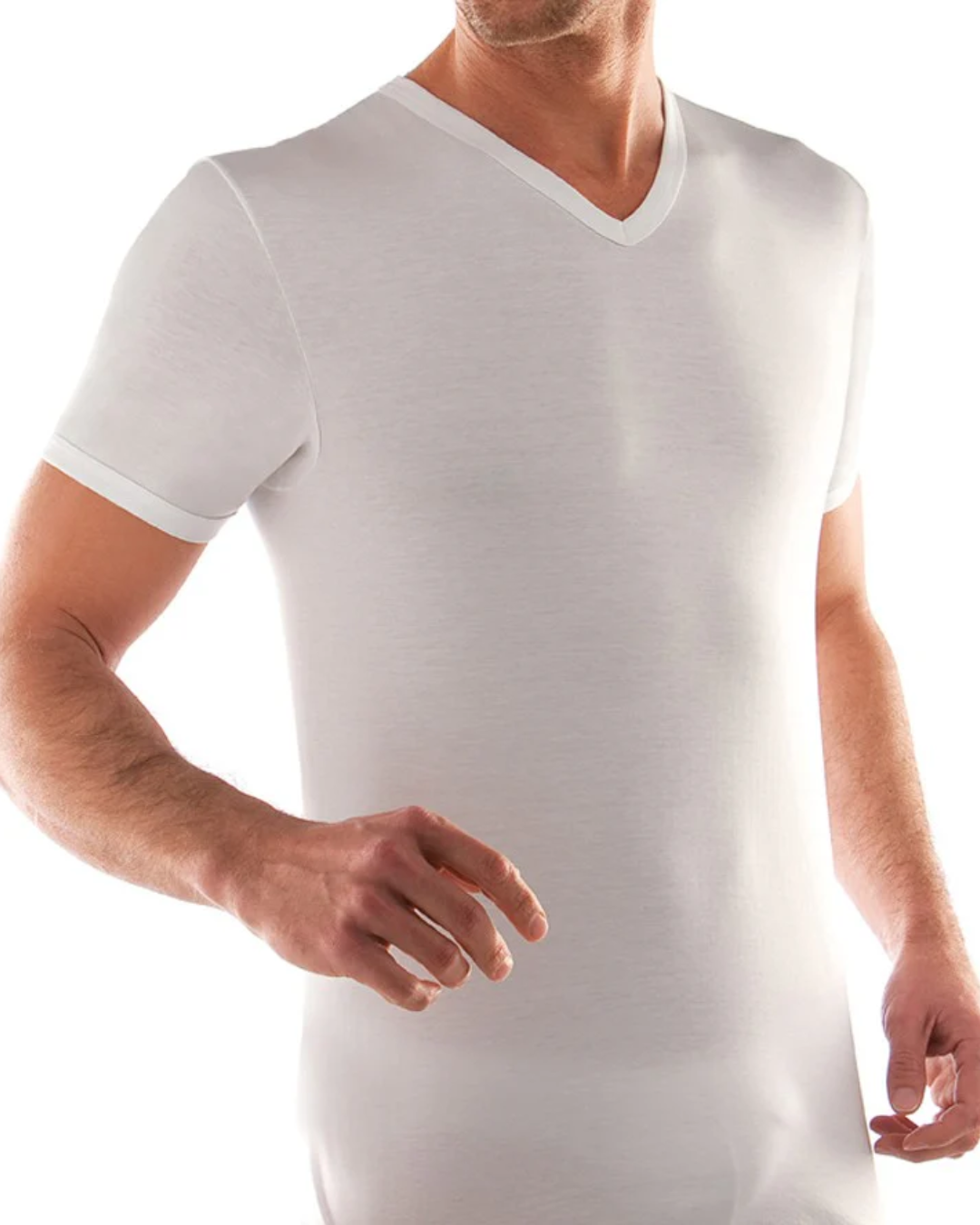 T-shirt uomo mezza manica con scollo a V, realizzata in filo di Scozia.