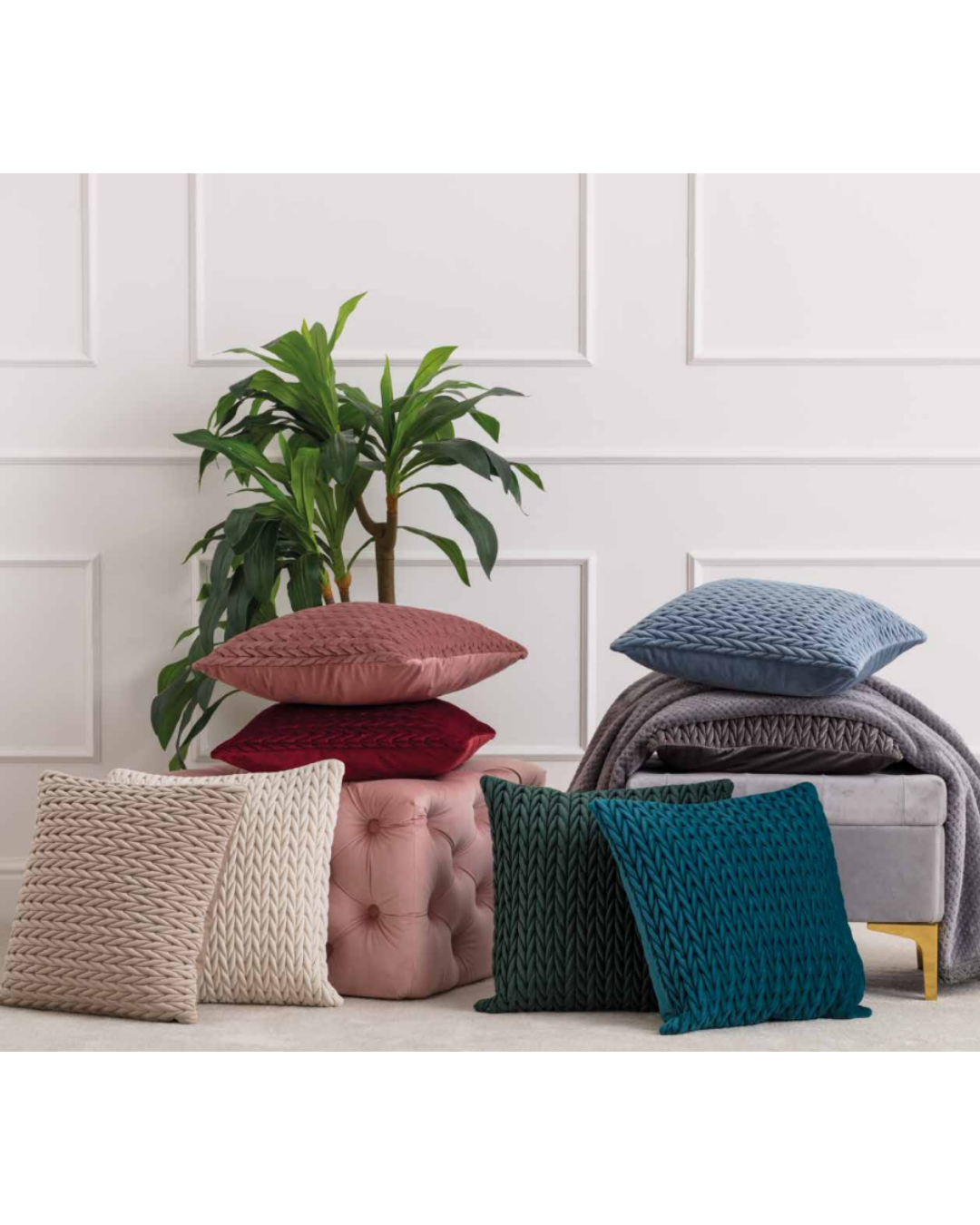 Fodera cuscino arredo in velluto trapuntato Intreccio di Linea Oro disponibile in vari colori.
