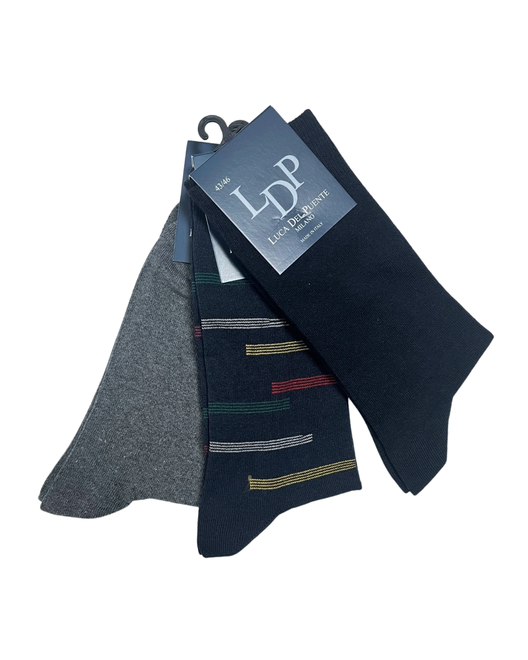 Tris di Calza lunga al ginocchio 2 in tinta unita e 1 a fantasia.