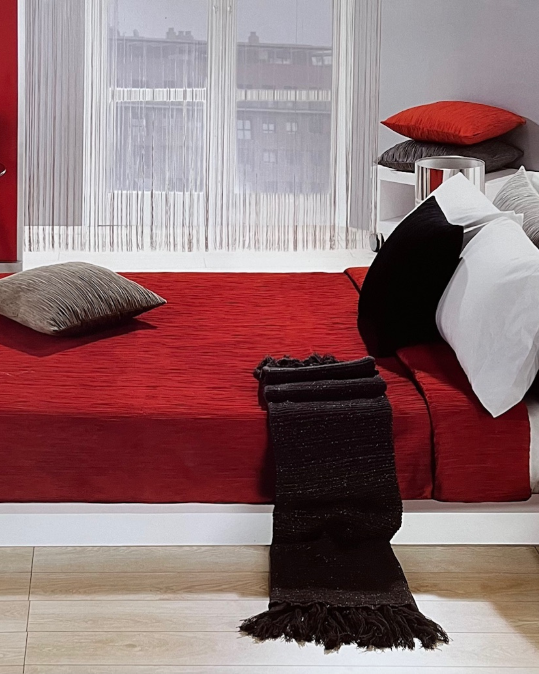 Copriletto matrimoniale in cotone trapuntato tinta unita.