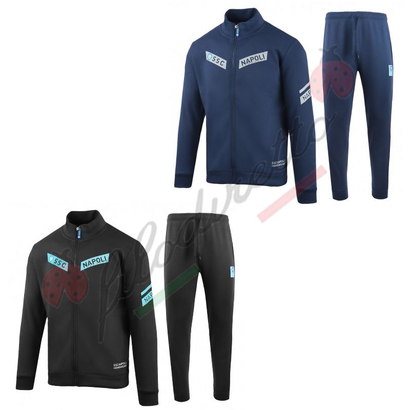 Tuta uomo SSC Napoli full zip in cotone felpato disponibile nei colori blu e nero.