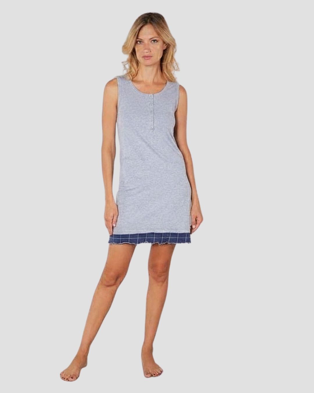 Camicia da notte donna Nazareno Gabrielli D326 a giro manica con spalla larga e 5 bottoni arricchita con logo ricamato e fascia finale di 3cm in cotone stampato.