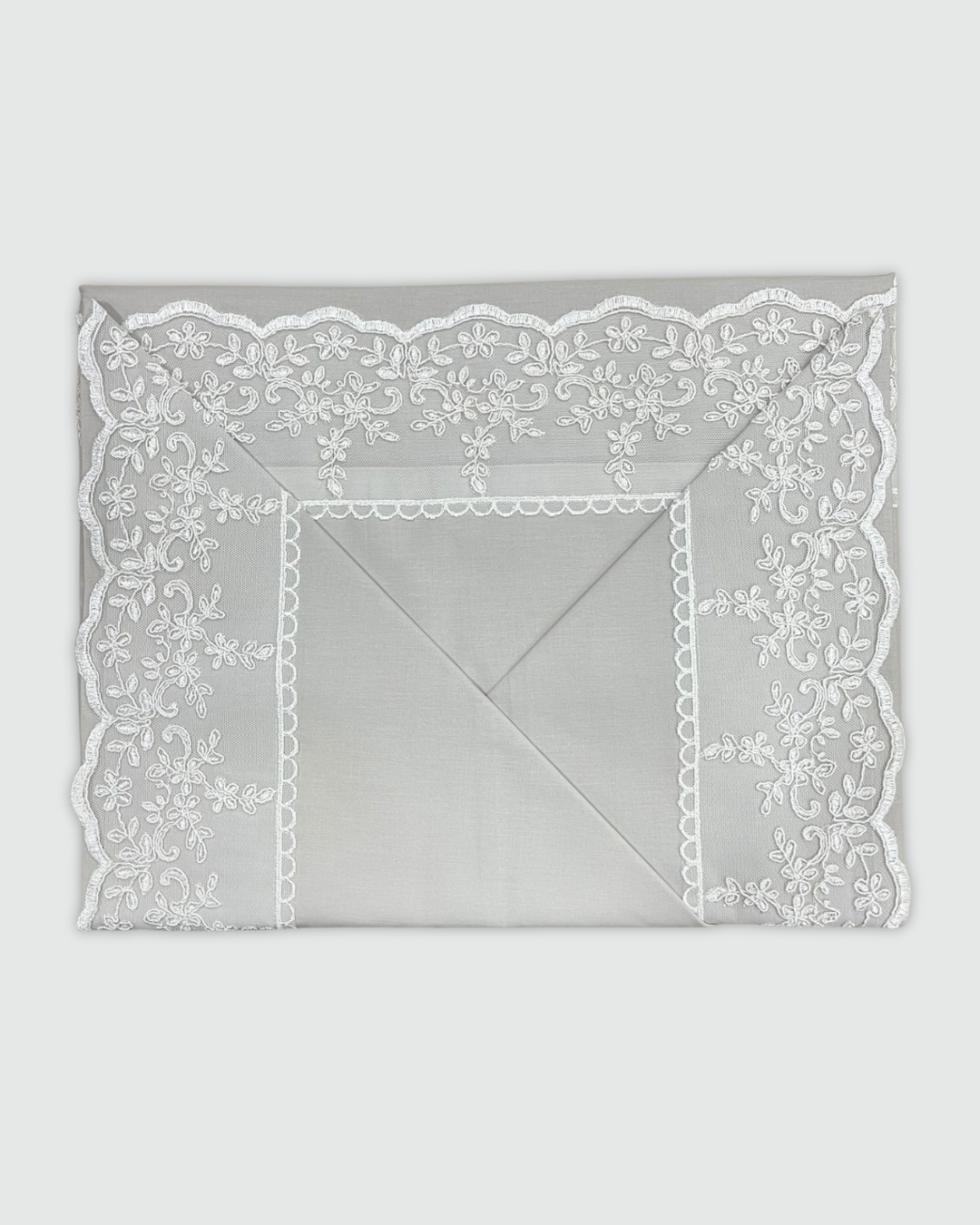 Dedicato a chi ama l'eleganza intramontabile, questo completo lenzuola trasforma la tua camera da letto in un rifugio di lusso e raffinatezza. La morbidezza del cotone si unisce alla bellezza di un ricamo artigianale, creando un pezzo di biancheria da letto unico.