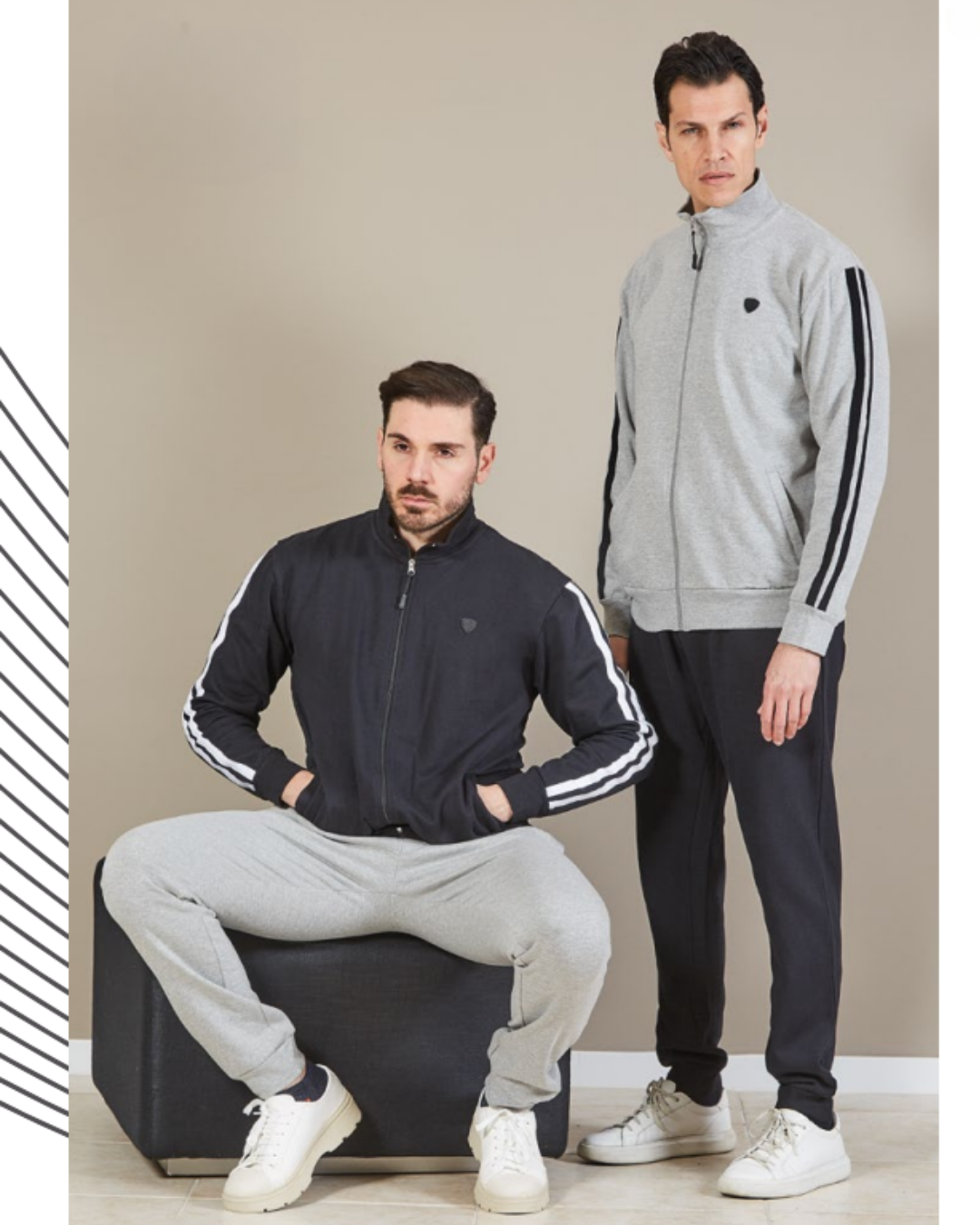 Disponibile in due varianti di colore nero/grigio(sx) e grigio/nero(dx).