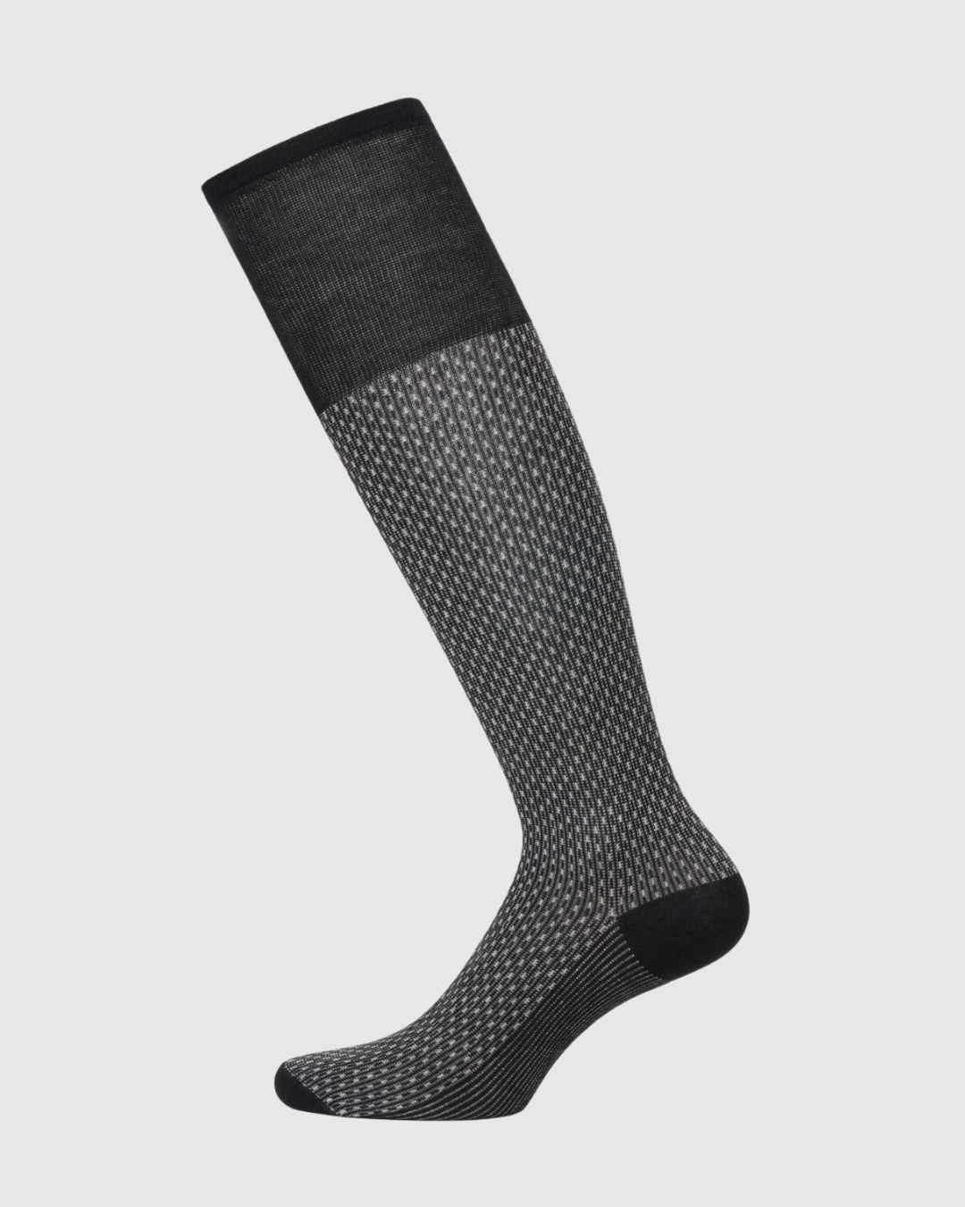 Calze lunghe in cotone e cachemire con motivo geometrico in contrasto, realizzato con lavorazione jacquard.