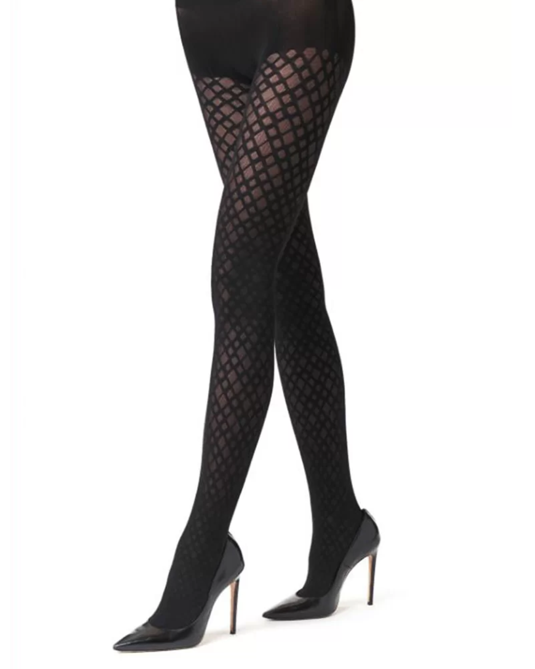Collant semivelati con motivo di losanghe e innovativo corpino senza cuciture.