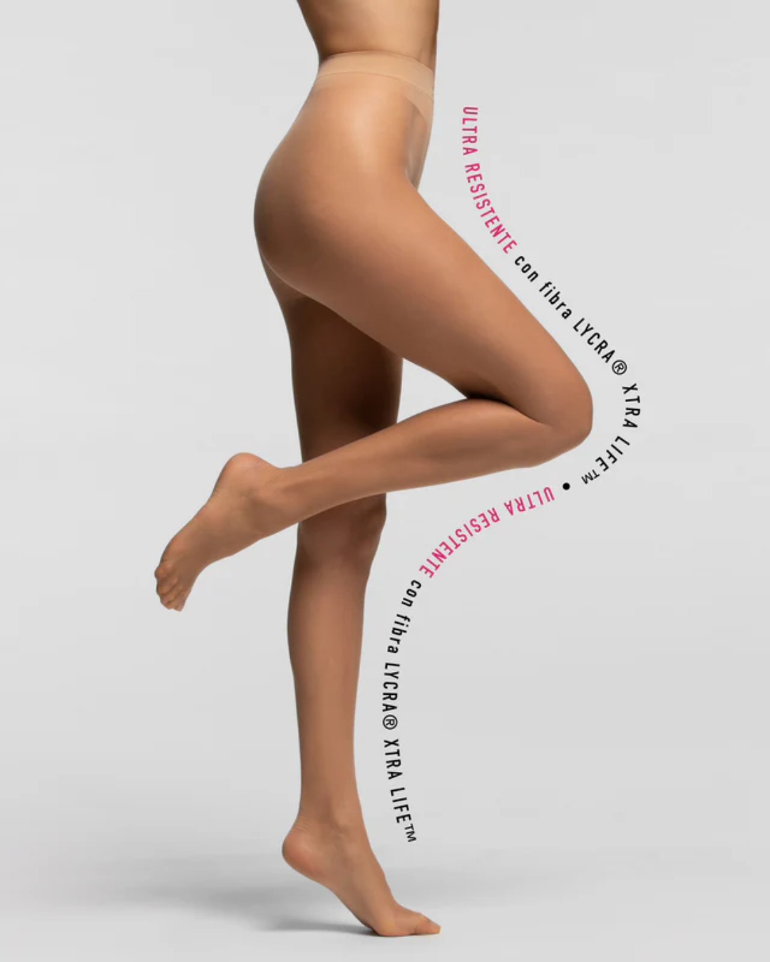 Il collant velato 15 Denari della linea Pompea è dotato di cinturino adattabile con tassello, il corpino è nudo con bande stondate che valorizza e slancia l’intera silhouette delle gambe.
