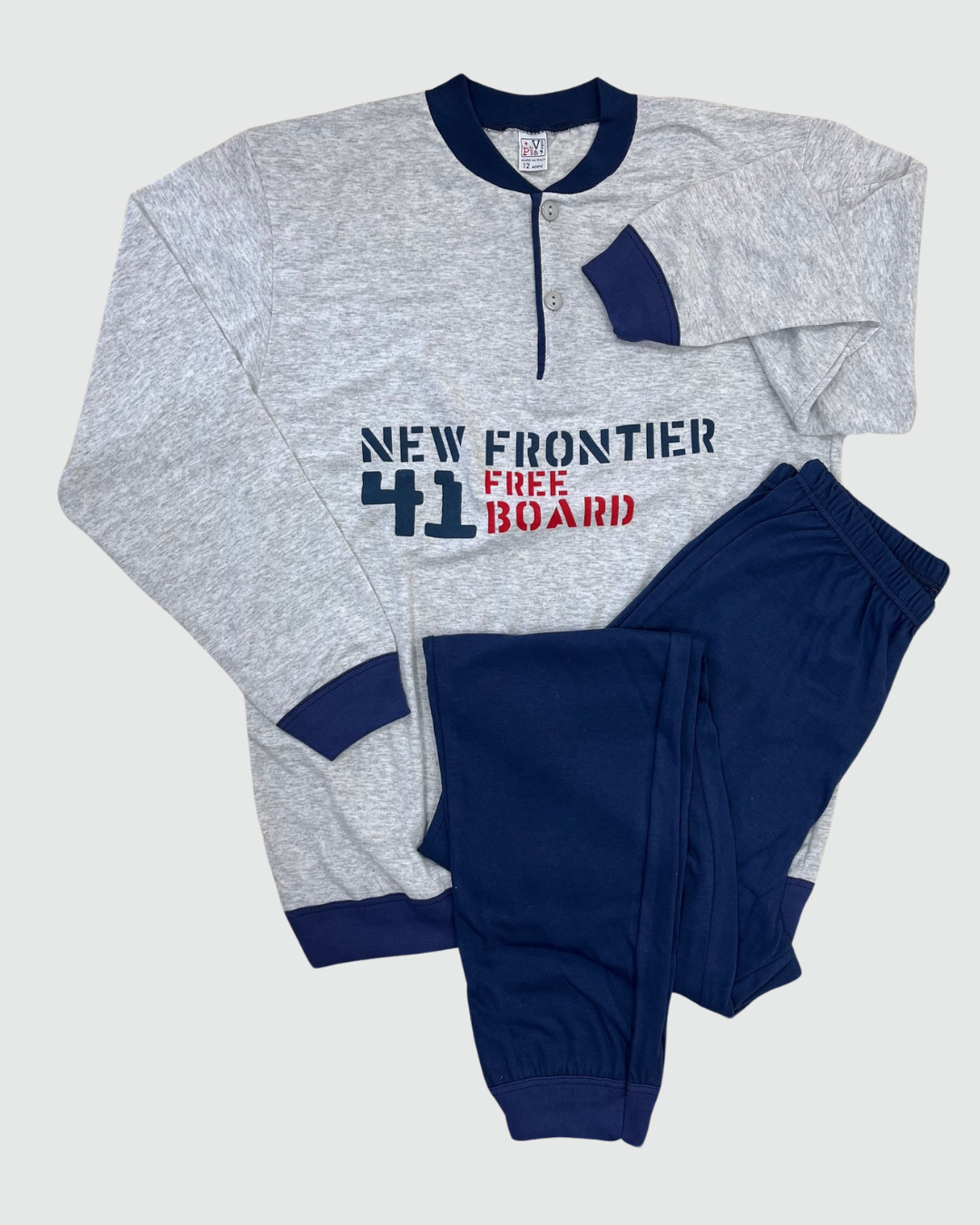 Maglia serafino con 2 bottoni, manica lunga con polsino elasticizzato e stampa sul petto.