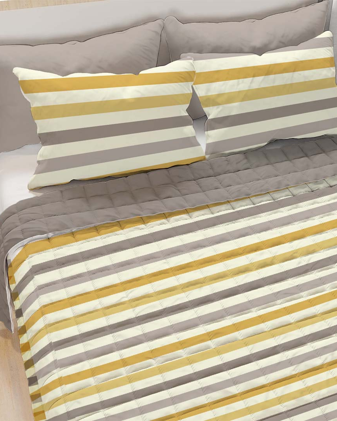 Copriletto 1 piazza e mezza boutis stampato a fantasia rigata.