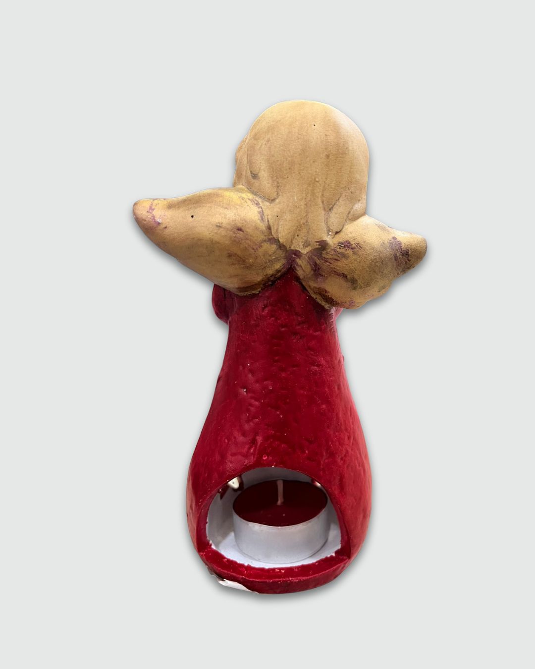 - Dettagli Luminosi: La base della veste rossa è decorata con intagli a forma di stella che permettono alla luce di diffondersi delicatamente nell'ambiente.