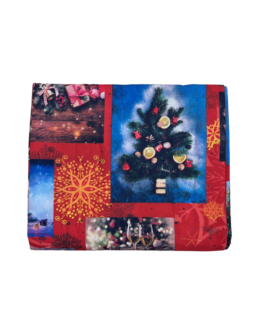 Tovaglia natalizia no stiro 12 posti disponibile in due modelli e colori.