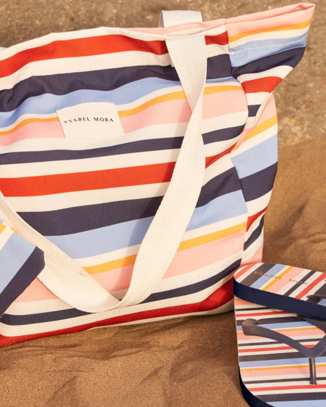 Questa borsa tote è il compagno perfetto per le tue giornate in spiaggia, le gite in città o lo shopping. Il design a righe vivaci, che spaziano dal blu marino al rosso corallo, dal rosa al giallo, cattura immediatamente l'occhio e aggiunge un tocco di allegria al tuo look.