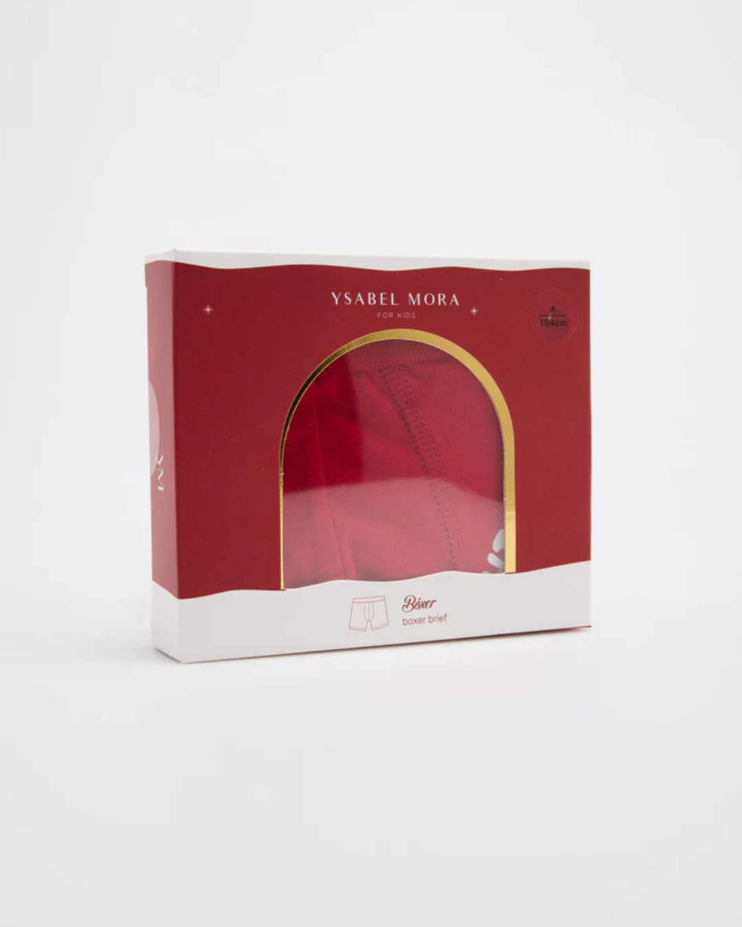 Porta l'allegria delle Feste nel cassetto dell'intimo del tuo bambino! Questi boxer natalizi rossi sono la combinazione perfetta di comfort e spirito festivo, presentati in una splendida confezione regalo, ideali per la calza della Befana o come pensiero sotto l'albero.