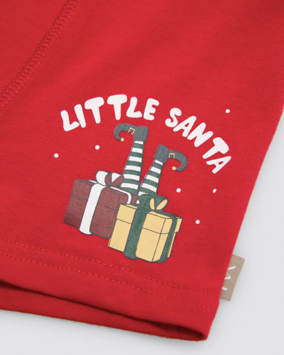 - Design Festivo Adorabile: Il rosso brillante e la stampa giocosa "Little Santa" con i piedini da elfo che spuntano dai regali sono un dettaglio irresistibile e allegro.