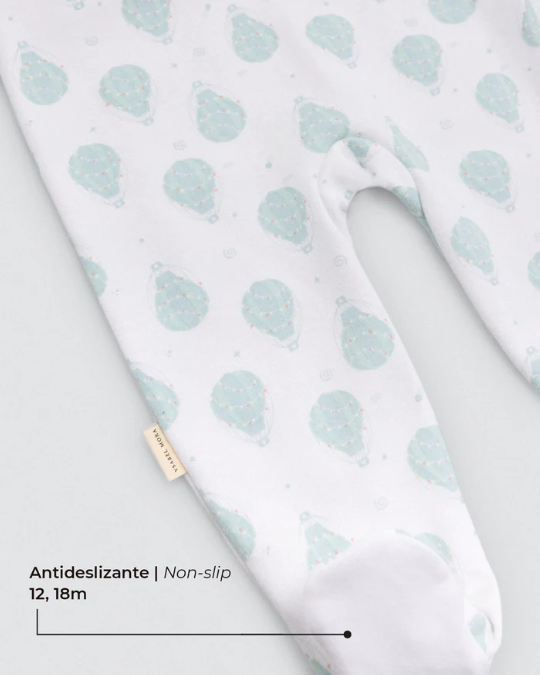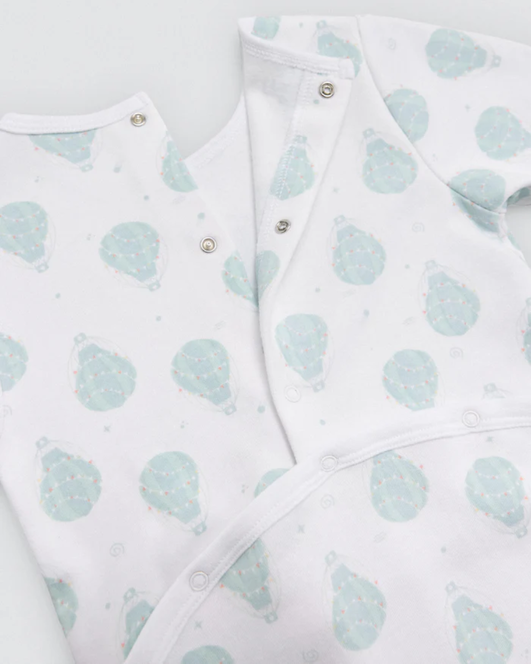 - Stampa Incantevole: Il pattern di delicate mongolfiere color verde menta su fondo bianco crea un look sognante e unisex, perfetto per ogni bambino.